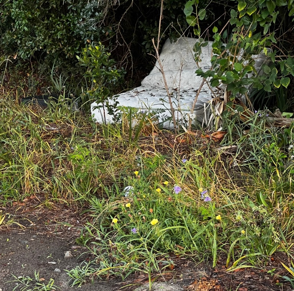It struck me one day when I was out walking in my old neighborhood. Near a set of train tracks, I happened to notice a small clump of wildflowers. I was beginning to explore soft pastels at the time and this lovely little token of summer seemed just perfect for a small colorful study so I whipped out my phone and snapped a photo. After a few pictures, my attention zoomed out and saw the area more fully. Surrounding the flowers was weeds & mud & trash, and just behind them was a tree line overgrown with vines. Slumped against the branches of some small shrubs, like it was having a rest on a hot day, was a dirty discarded mattress. I thought wow, isn’t it amazing that these things live next to each other. I thought a lot about the contrast I was witnessing, and about how lucky I was to have noticed the beauty in that scene. I mean here I was, just fucking around on a nice day in a spot not known for lovely scenery, and boom! I had managed to notice the small beautiful thing first. I was inspired. I had found art.